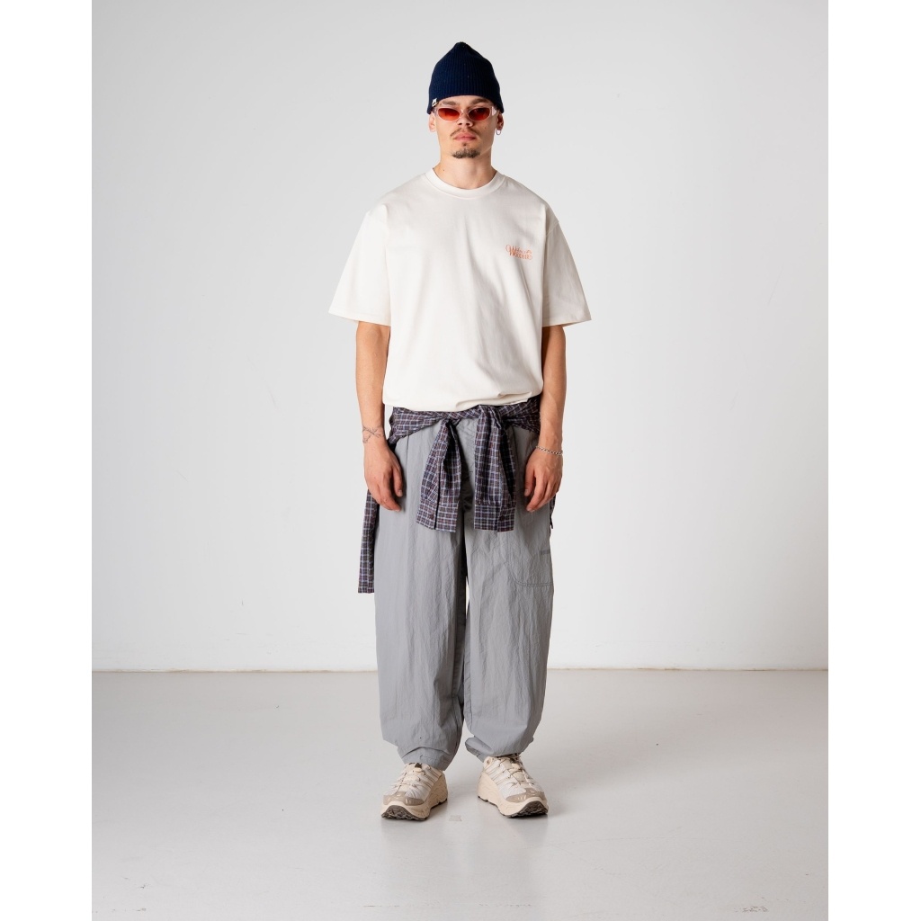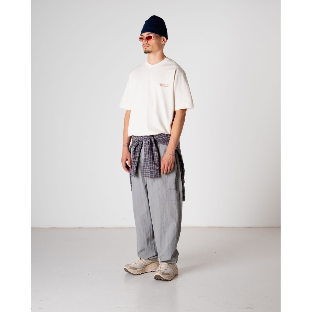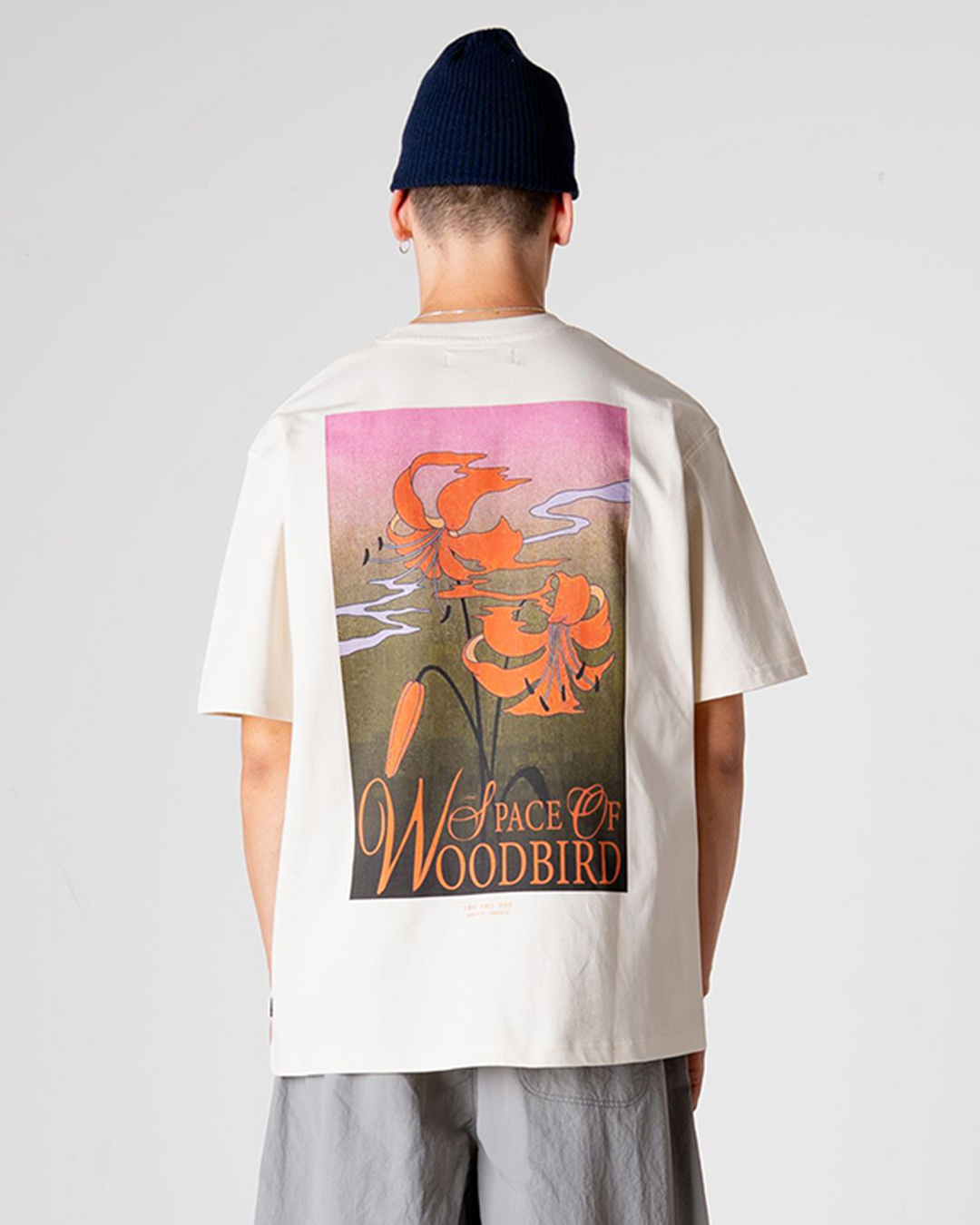 • De WBBAINE Base Tee van WOODBIRD is een beige T-shirt met strakke lijnen en subtiele details. Voorzien van korte mouwen, een comfortabele ronde hals en een subtiel logo op de borst. Op de achterkant geeft de oranje graphic print de tee zijn kenmerkende look: gedurfd maar niet overdreven.