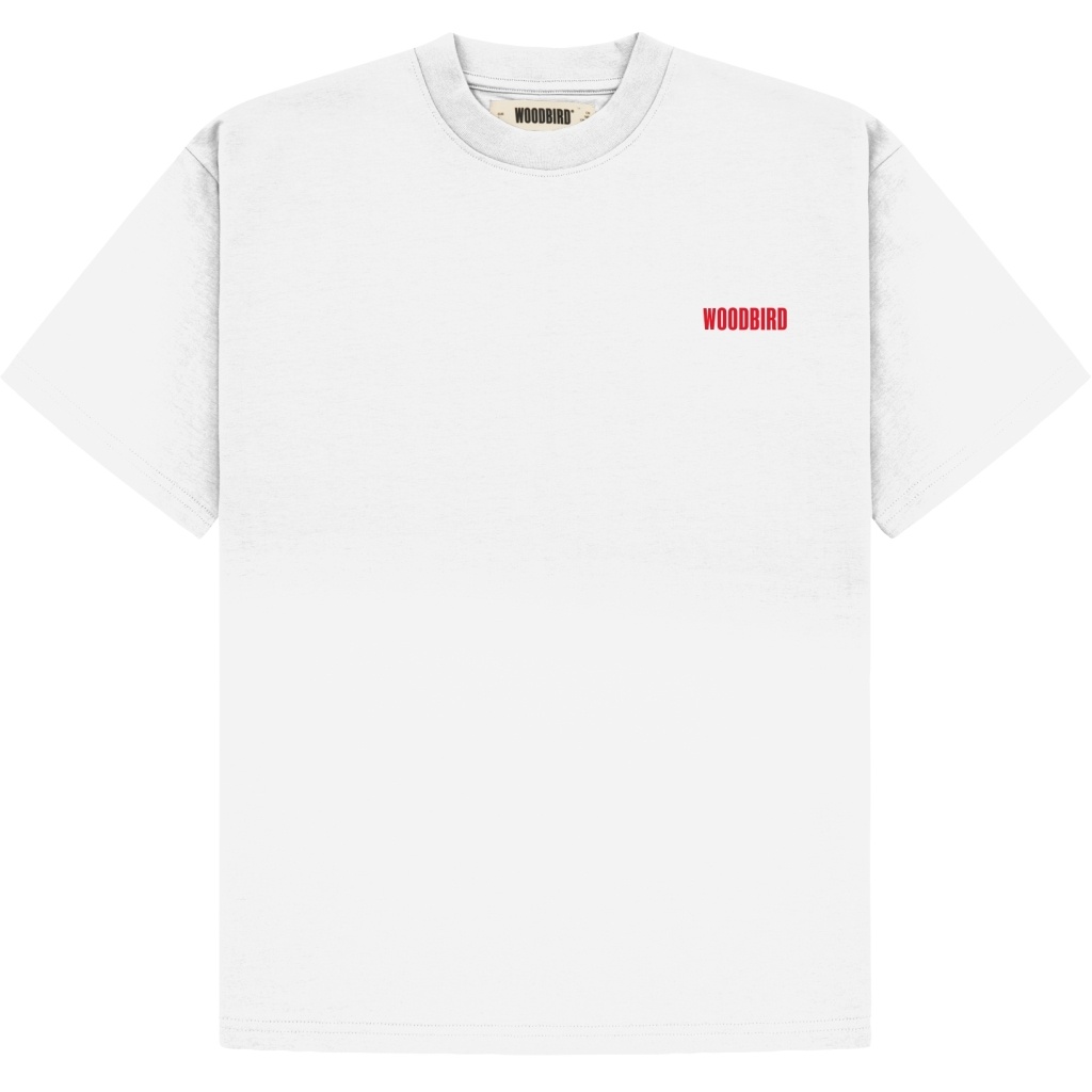 • De WBBAINE Base Tee van WOODBIRD is een zwart T-shirt dat moeiteloze stijl uitstraalt. Uitgevoerd met korte mouwen, een ronde hals en een subtiel logo op de borst. De grote rode graphic op de achterkant zorgt voor een krachtig accent en maakt de look compleet.