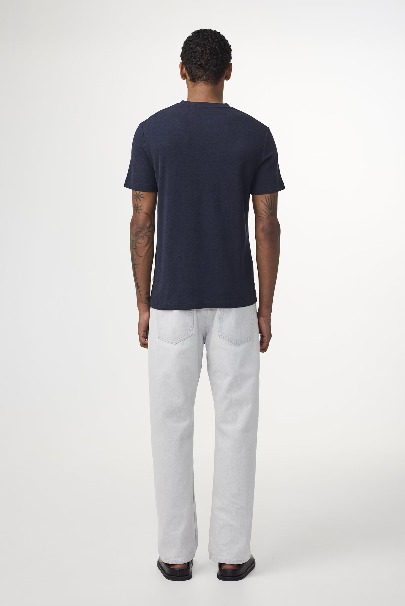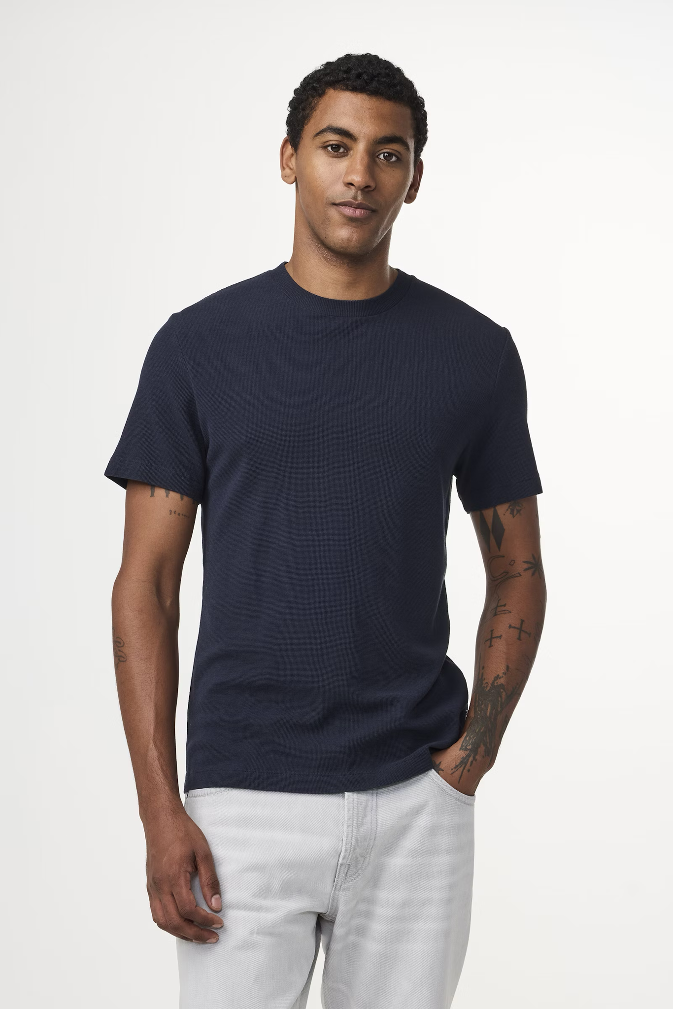 • Drapey classic T-shirt in een regular fit, gemaakt van een honeycomb gestructureerde katoen en TENCEL™ Modal blend – een duurzame vezel afkomstig uit houtpulp die zacht, ademend en soepel vallend is. De honeycomb structuur geeft het shirt een subtiele textuur en een moderne uitstraling.