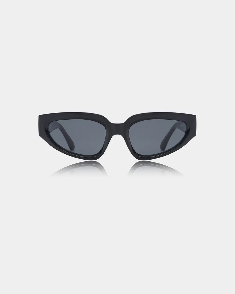 A slightly larger, classic yet trendy pair with narrow oval cateye lenses in an upright, robust frame with wide temples that together create a strong yet feminine look.