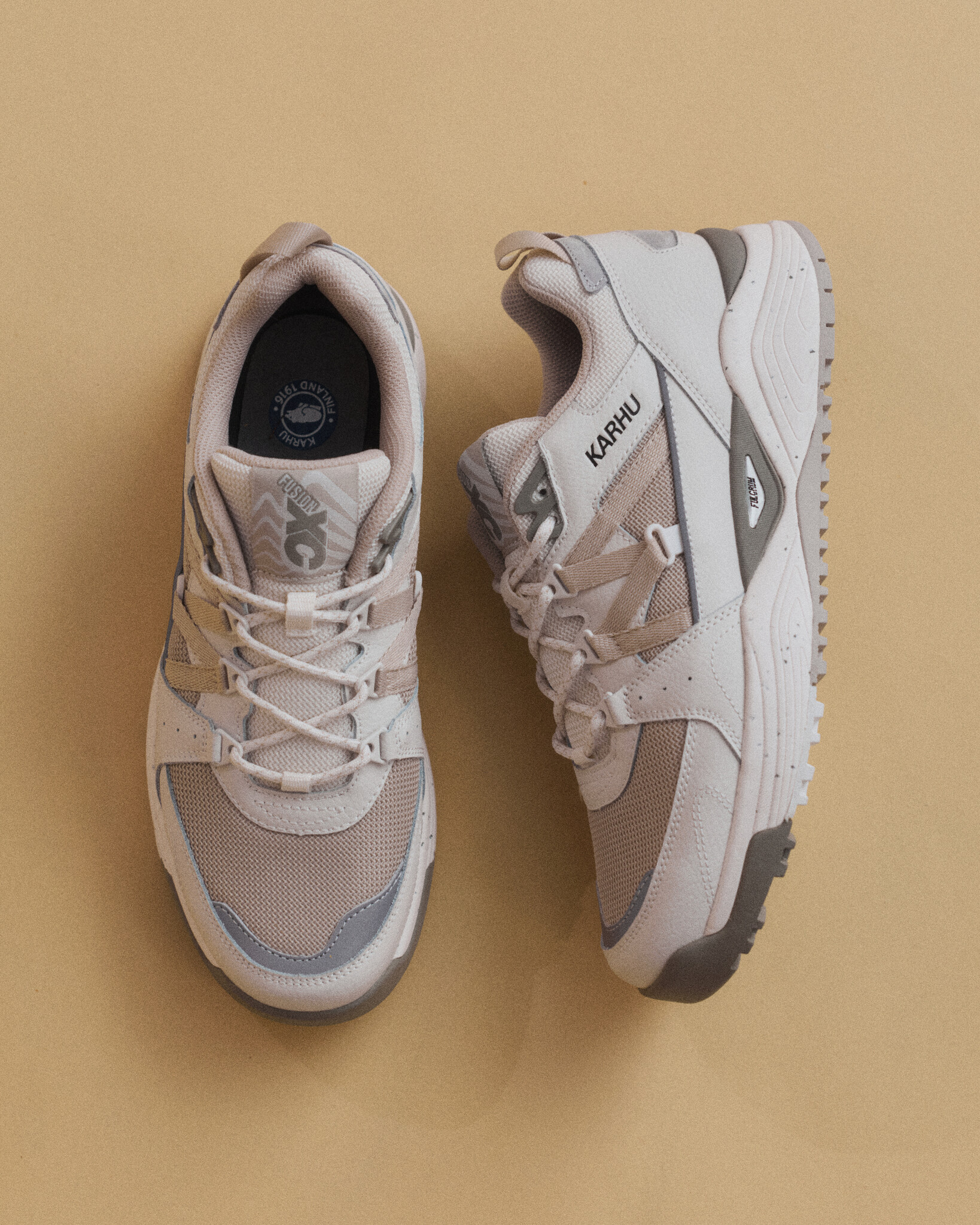 • De Karhu Fusion XC in kleur Blanc De Blanc / Silver Lining is een outdoor-geïnspireerde sneaker met een stevige, robuuste uitstraling gecombineerd met technische features. Hij gebruikt elementen uit Karhu’s erfgoed, zoals het retro-“M” logo (vergelijkbaar met dat van de 1996 Fusion-modellen), en combineert dat met moderne functionele onderdelen. De schoen heeft waarschijnlijk een bovenwerk van suede en mesh of nubuck, voor comfort, ademend vermogen en duurzaamheid. Voorzien van een T-profiel buitenzool voor goede grip op verschillend terrein, plus een teenbumper voor extra bescherming. De tong is volledig gusseted, wat wil zeggen dat hij aan de zijkanten vastzit om vuil en stof buiten te houden.
