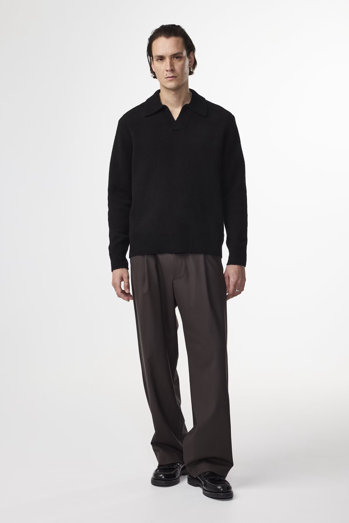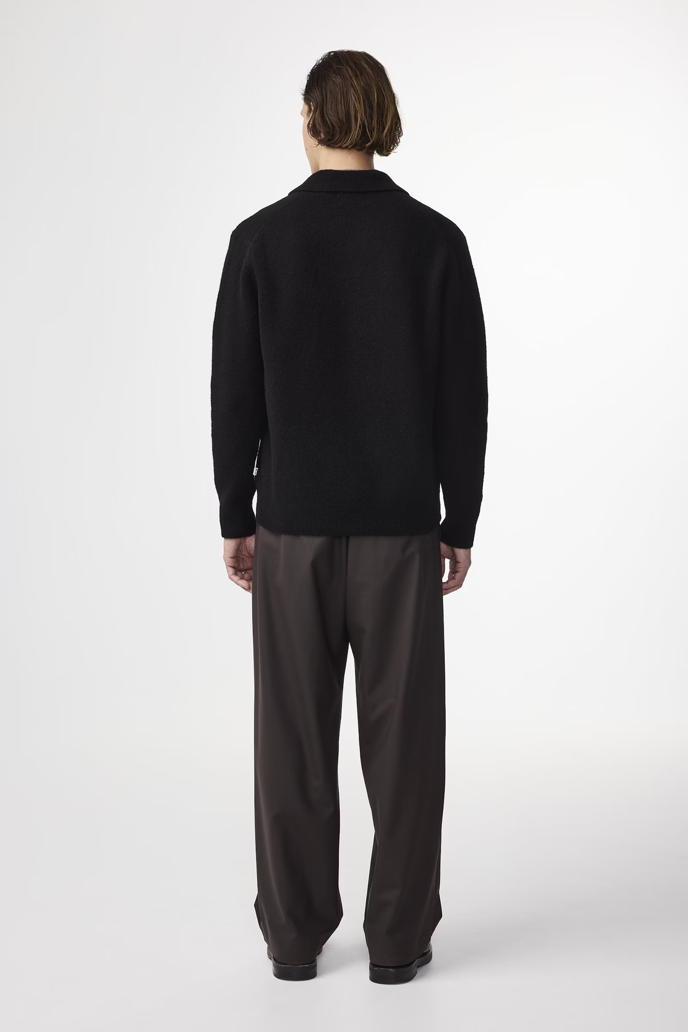 • Bouclé polo knit, gemaakt van een ultra-zachte wolblend met extra stretch voor optimaal comfort. Ontworpen met een fluffy textuur en afgewerkt met een klassieke open polokraag.