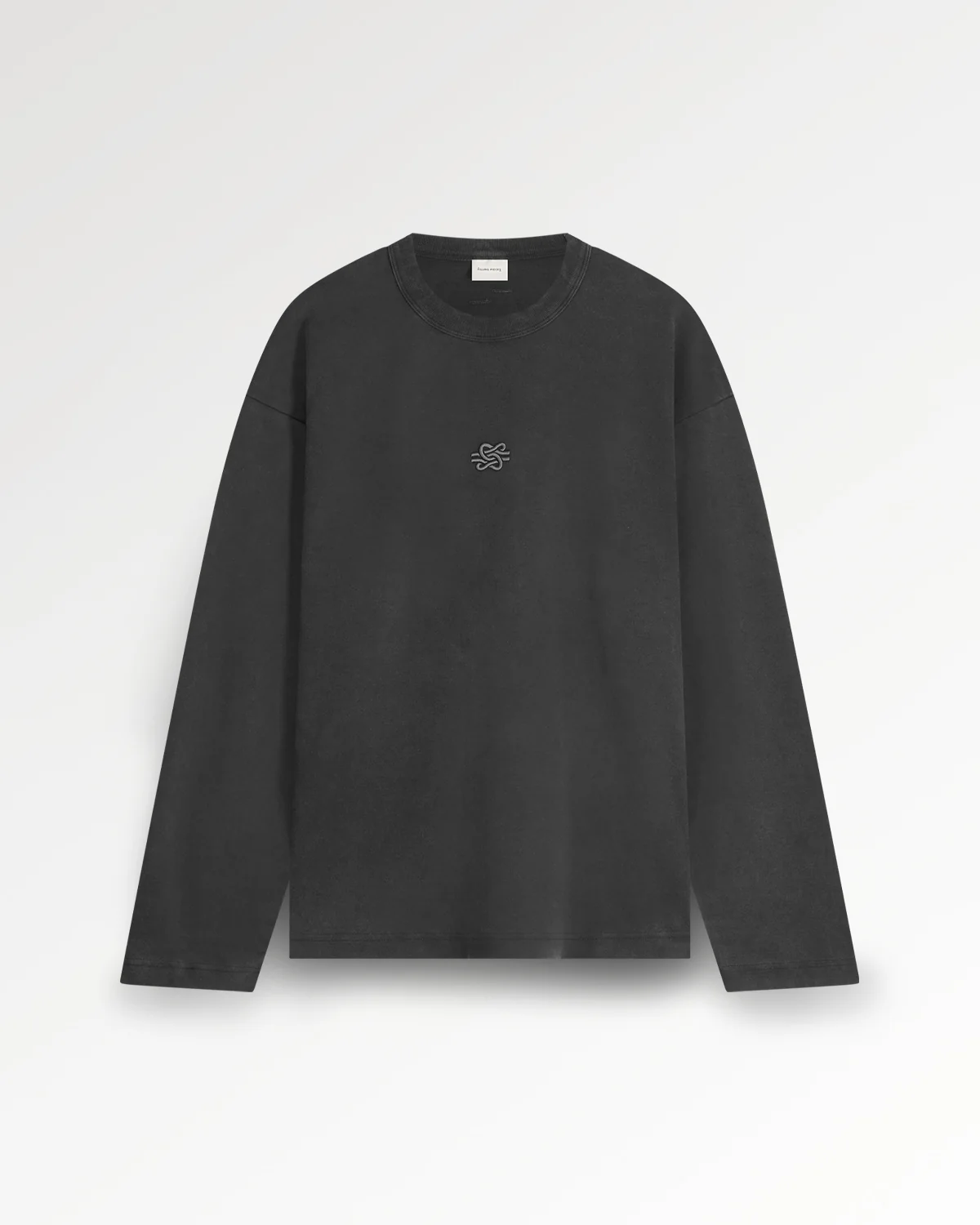 Dit is de essentiële longsleeve, verfijnd met een moderne snit en subtiele signature branding. Deze boxy uitvoering is vervaardigd uit hoogwaardig 250 gsm biologisch katoen single jersey, wat zorgt voor een comfortabele, premium feel. Het kledingstuk is gesneden in een eigentijdse boxy fit, wat zorgt voor een relaxte uitstraling. Een subtiele 3D-borduursel van de Gowtu Knot op de borst en een vintage black wash maken deze verfijnde essential compleet.