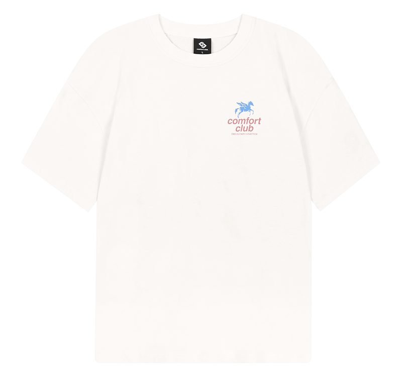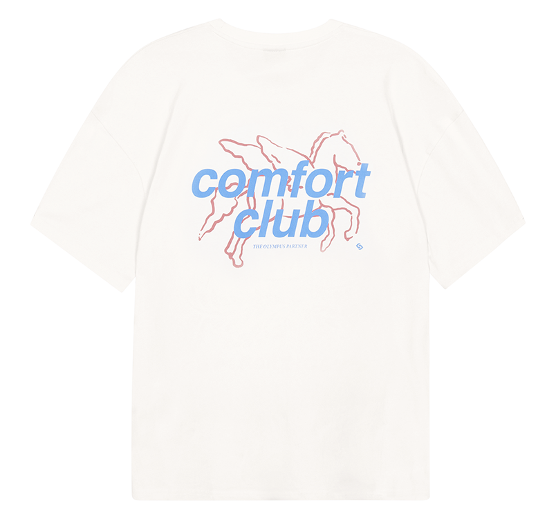 Off-white jersey T-shirt met korte mouwen, gemaakt van medium-weight katoen en uitgevoerd in een iets oversizede pasvorm. Afgewerkt met een geribde ronde hals en het Comfort Club Celestial logo-appliqué op de voorkant.
