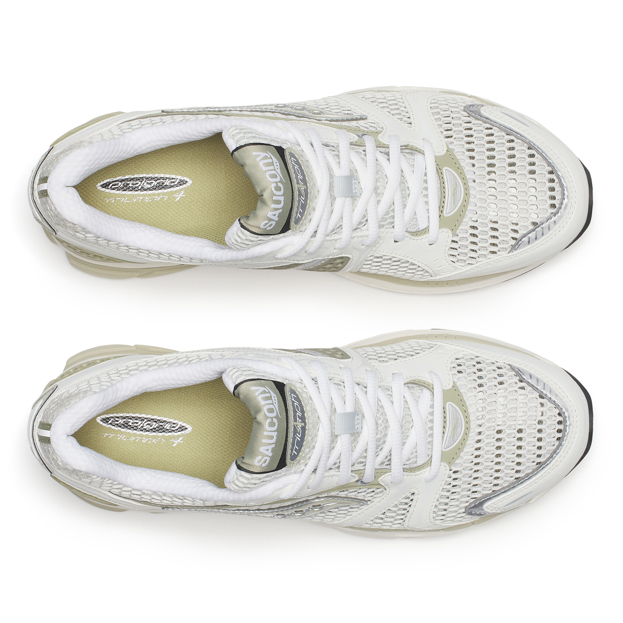 Saucony Progrid Triumph 4 White - Unisex Sneakers - Wit ‘White Onyx / Elm Onyx Blanc / Orme’ is een retro-runner-sneaker die vintage hardloop-DNA moeiteloos combineert met moderne comfort- en stabiliteitstechnologie. Geïnspireerd door de iconische designs uit de jaren 2000, heeft deze sneaker een lichtgewicht, ademend bovenwerk van open mesh met verfijnde textile en synthetische overlays voor structuur en ventilatie. Dankzij de Arch-Lock technologie sluit de schoen ondersteunend rond je voet aan, terwijl de ProGrid-tussenzool zachte demping en stabiele ondersteuning biedt bij elke stap — ideaal voor dagelijks dragen, van city-looks tot casual outfits.