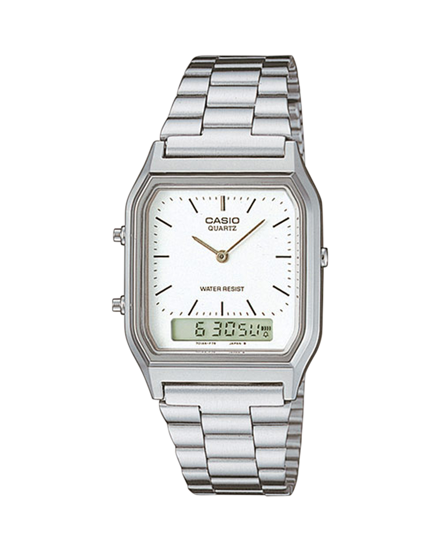 Een absoluut stijlvolle metalen kast met een hoekig ontwerp, gecombineerd met een elegante metalen band, geeft dit horloge een unieke look. De wijzerplaat is een slimme combinatie van een LCD-scherm en een analoog display met uren- en minutenwijzers. Een echte evergreen die al bijna 30 jaar furore maakt in de horlogetabellen en tijdloze elegantie belooft met zijn minimalistische ontwerp. Dit horloge is meer dan alleen een uurwerk, het is een statement van stijl en tijdgeest. Opmerking: We raden aan goed naar de maatinformatie te kijken.