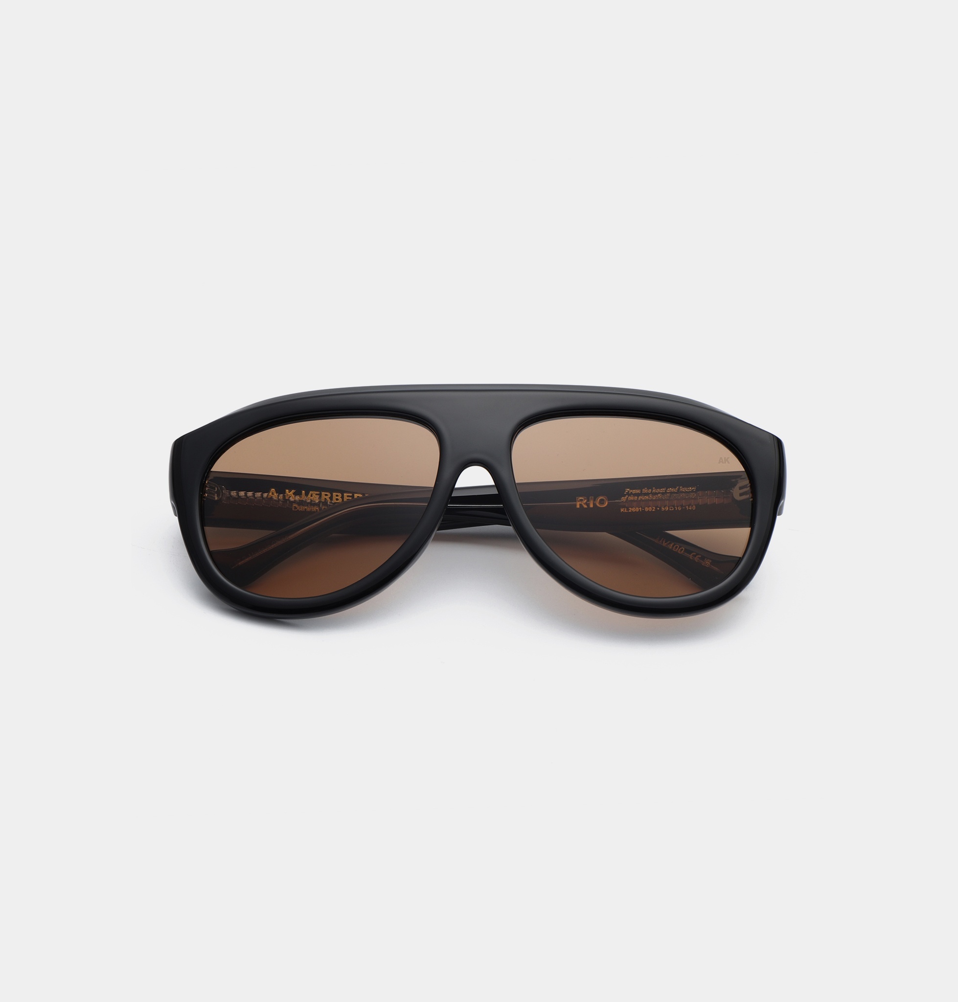 Rio - Black is een herinterpretatie van de pilotenstijl met een opvallend en sculpturaal montuur. Het grote silhouet en het diepe acetaat zorgen voor een opvallende look. Ontworpen voor zonnige dagen en zelfverzekerde stijl