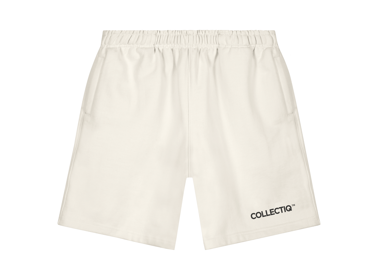 Off White short met een relaxed fit, gemaakt van zwaar jersey katoen. Voorzien van een elastische tailleband met trekkoord en ritszakken aan de voorkant. Collectiq Signature graphic op het been.