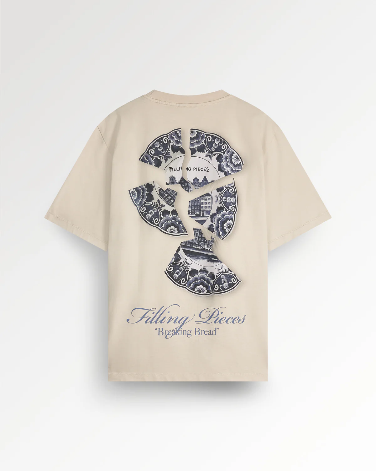 Het T-shirt Broken Plate is gemaakt van premium biologisch katoen van 210 gsm, wat zorgt voor een hoogwaardige en gestructureerde feel. Deze seizoensvariant in Peyote biedt een zachte achtergrond voor de uitgesproken ‘Broken Plate’-graphic—onze moderne interpretatie van traditioneel Delfts Blauw, met de Nederlandse grachten als beeld. Het artwork verwijst naar het geluk dat in verschillende culturen wordt geassocieerd met scherven van borden en naar de feestelijke traditie van het kapotslaan van borden. Met een moderne, boxy fit is dit T-shirt een echte statement piece.