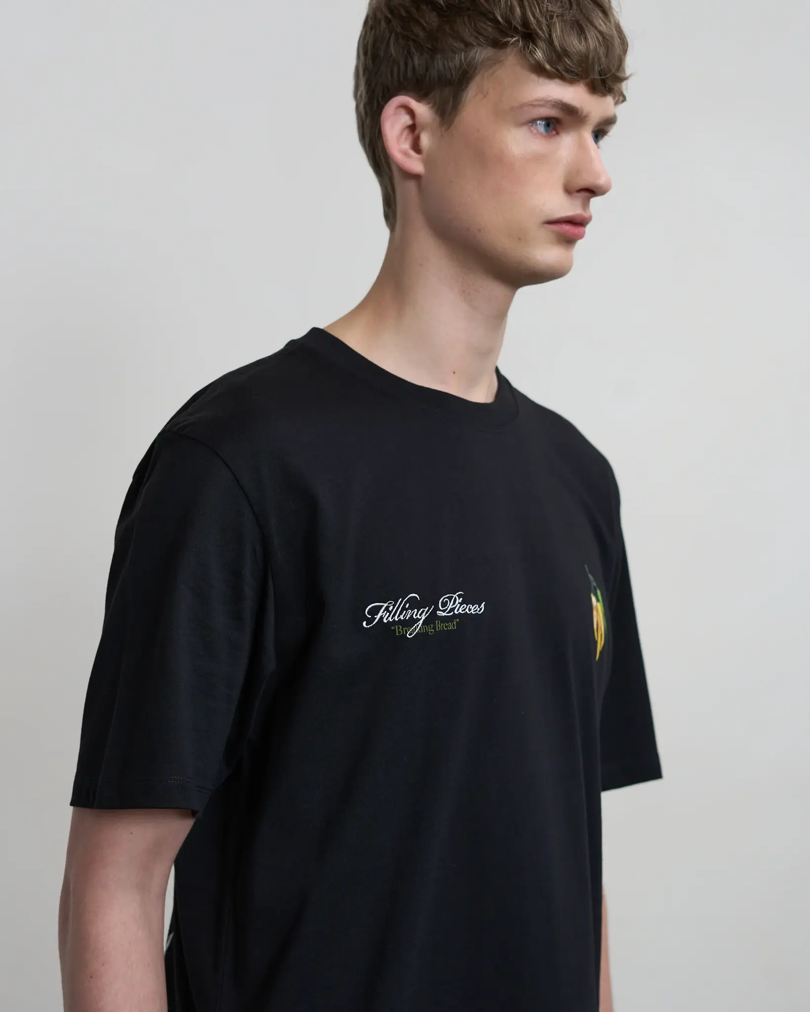 • Het T-shirt Pepper fungeert als een draagbaar canvas en is een viering van wereldkeukens. De cleane Antique White basis vormt het perfecte canvas voor het exclusieve, handgeschilderde artwork. De graphic is een “balancing act of the peppers of the world” en toont een compositie van verschillende pepers uit uiteenlopende keukens en culturen. Met een strakke, regular fit is dit T-shirt een uitgesproken statement van culturele waardering en artistiek vakmanschap.