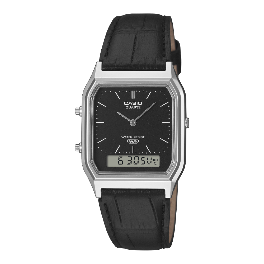 • Verwen je liefde voor vintage-geïnspireerde stijl met een analoog-digitaal horloge met een compacte, hoekige wijzerplaat. Het horloge is gebaseerd op de populaire AQ-230 en heeft een elegante, verfijnde uitstraling en is praktisch in gebruik met waterbestendigheid voor dagelijks gebruik, stopwatch, alarm en andere functies. Het klassieke reliëfontwerp van de band voegt een tijdloos tintje toe. Geniet van de verfijning die voortkomt uit doordachte aandacht voor kleine details en de speciale charme die frisse kleuropties bieden.